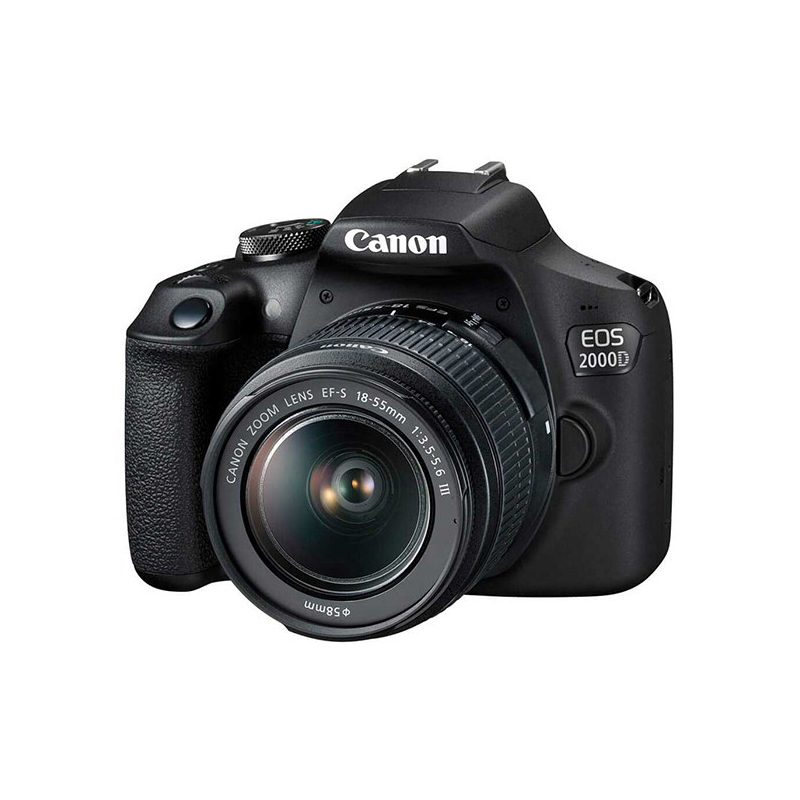 دوربین کانن EOS 2000D با حسگر CMOS، پردازشگر DIGIC 4+، حداکثر رزولوشن 6000 × 4000، دقت موثر حسگر 24.1 مگاپیکسل، نسبت ابعاد عکس 3:2 – 4:3 – 16:9 – 1:1 همراه با فرمت غیرفشرده عکس RAW و قطع APS-C در اختیار کاربران قرار گرفته است. ایزوی تعبیه شده در دوربین کانن 2000D برابر 6400 ( 12800 ایزوی گسترش یافته) است که امکان کار در محیطهای نوری ضعیف را هم میسر کرده است و این در حالی است که پردازنده Digic 4+ این دوربین عکاسی هم باعث افزایش عملکرد بسیار بالای Scene inteligent Auto Mode جهت عکاسی هرچه آسانتر Point & Shoot بههمراه قابلیت فیلمبرداری بهصورت Full HD شده است. گفتنی است که Canon 2000D علاوه بر قدرت عکاسی پیاپی سه فریمبرثانیه دارای طول عمر باتری تا 500 شات یا بهعبارتیدیگر عملکرد یک ساعت و سی دقیقهای با رزولوشن 24.1MP هم است و این در حالی است که نمایشگر تعبیه شده در این محصول از نوع السیدی در اندازه 7.5cm با پایهای فلزی است. دوربین کانن 2000D یک محصول بسیار کاربردی برای عکاسانی است که بهدنبال یک دوربین قدرتمند با قیمت و کیفیتی معقول هستند، زیرا طراحی تکنولوژی سنسور و پردازنده قوی همراه با باز بودن دست کاربران به اتصالات وایفای و دسترسی هرچه راحتتر به کلیه تنظیمات از طریق منوی دوربین و همچنین دسترسی به شش تصویر راهنما و چند فیلتر در حالتهای دستی باعث شده است تا تمام تصاویر بهراحتی ثبت و ضبط و در شبکههای اجتماعی به اشتراک گذاشته شوند. لنز کانن مدل EF-S 18-55mm f/3.5-5.6 III گزینهای مطلوب جهت دوربینهایی با دهانه EF در فاصلهکانونی 18-55mm است که با تغییر فاصله کانونی 28.8-88mm قابلیت نصب روی دوربینهای APS-C را هم دارا هستند. بهطورکلی این لنز عکاسی علاوهبر دیافراگم حداکثری f/3.5-f/38 برای کنترل عمق میدان دارای دیافراگم شش تیغهای جهت ایجاد بوکههای زیبا برای پسزمینه است که بهدلیل وجود یک عدسی aspherical بهمنظور کاهش بازتابندههای نوری شاهد تصویری ایدهآل با کیفیتی بالا در خروجی کار میشوید. گفتنی است که تعبیه سیستم فوکوس خودکار با امکان تعویض سریع از خودکار به دستی از دیگر قابلیتهای لنز کانن 18-55 میلیمتر است. حداکثر سرعت فیلمبرداری این دوربین 30 فریمبرثانیه است.